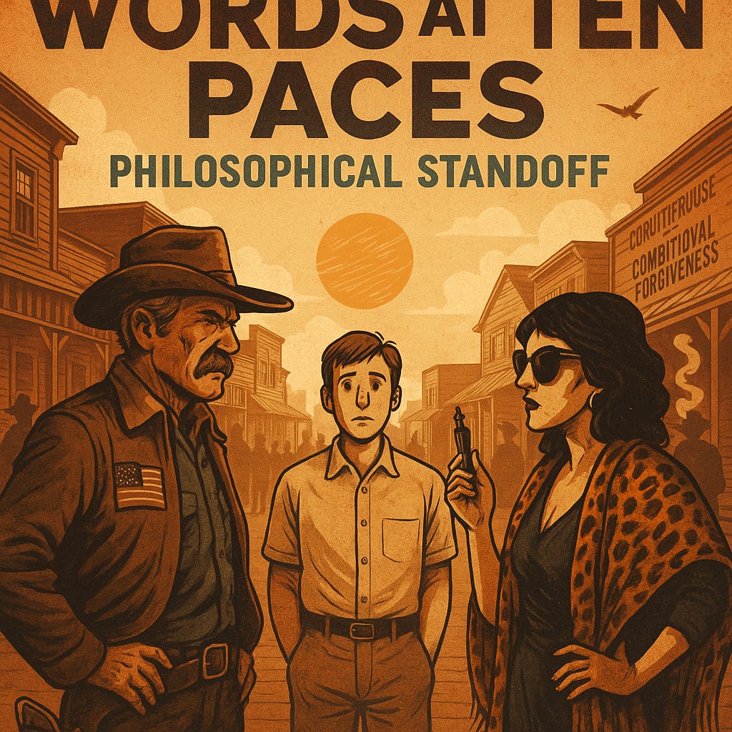 I joined the gathering crowd in front of the Courthouse of Conditional Forgiveness. It had the density of repressed emotion at a family reunion. Every day, three brave souls attempted to out-stare, out-speak, or out-silence each other in what the locals called the Philosophical Standoff.